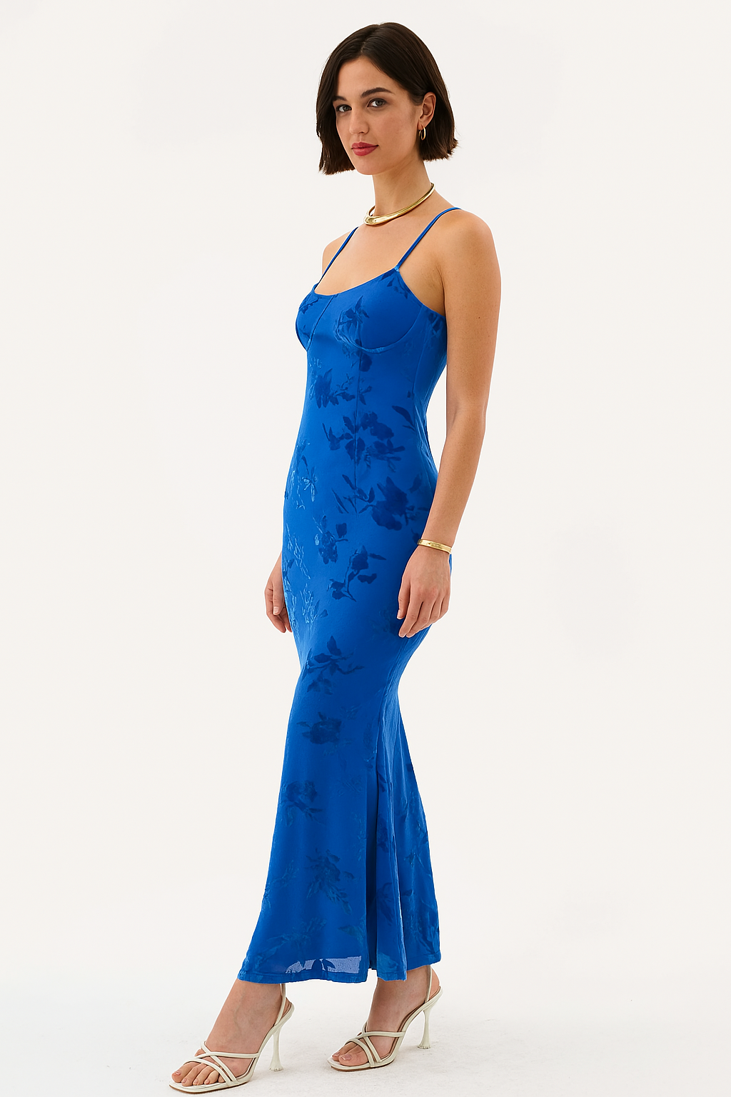 Some dresses whisper elegance — this one radiates it. Think golden hour moments, rooftop soirées, and eyes that follow you across the room. The Celeste turns any occasion into a main-character moment, with its luxurious floral burnout velvet and sleek silhouette.