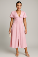This V-neck A-line maxi dress features voluminous puff sleeves and a free-flowing silhouette, blending bohemian ease with quiet elegance. Designed for movement, lightness, and warm-weather dressing.