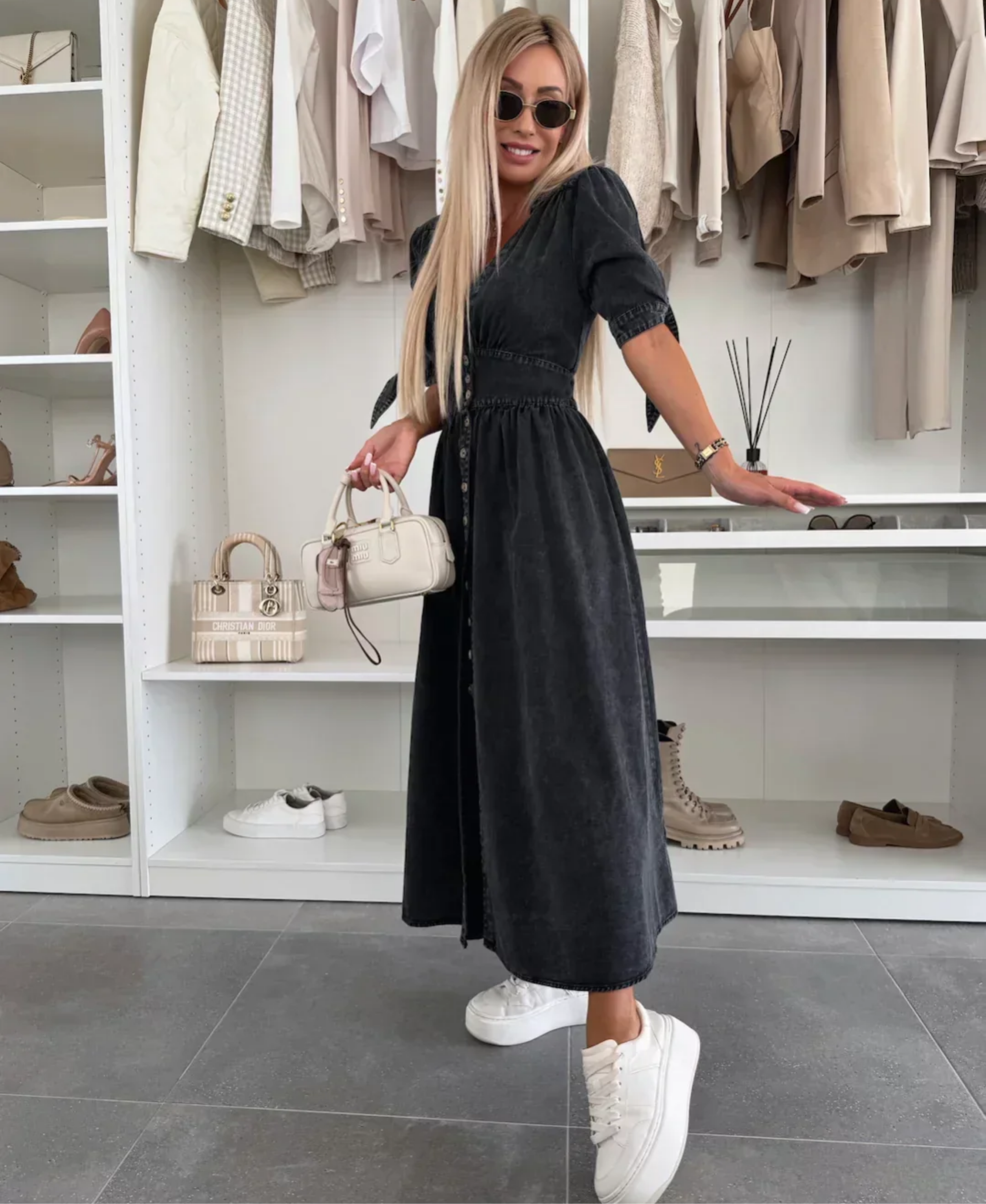 Do you also want to present your most beautiful side? Those moments when you feel absolutely fantastic and receive compliment after compliment. This elegant dress does just that for you! With its wooden buttons and bows on the sleeves, it will draw all eyes to you!