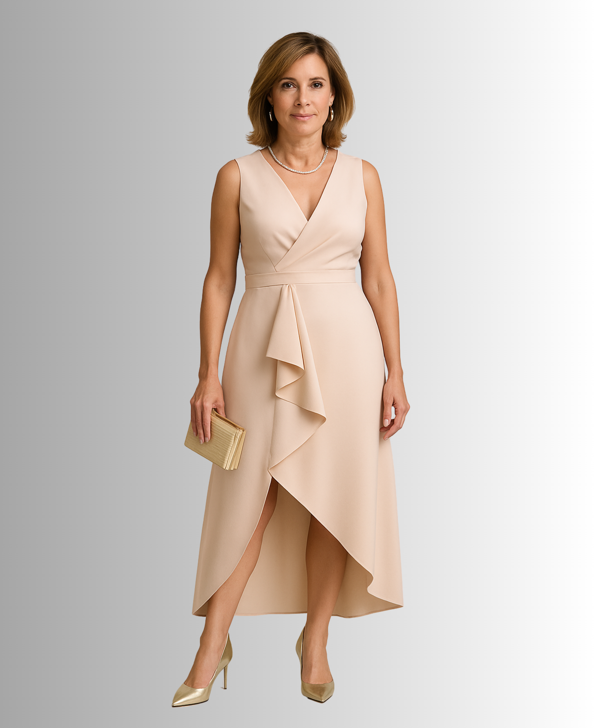 Crafted in a soft beige tone with a luxe satin feel, it's perfect for weddings, date nights or stylish evenings out. Pair it with nude heels and a clutch for a polished, sophisticated look.